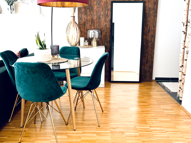 Hier ging es wieder darum, dass wir ihr Ess- und Wohnzimmer mit kleinem Aufwand wohnlicher und gemütlicher machen. Da ihr das neue Schlafzimmer so gut gefallen hat, wollte sie das Ess- und Wohn-zimmer im ähnlichen Stil haben.
